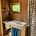 Le logement Cabane Insolite Les Vargottes comprend un micro-ondes et un réfrigérateur, ainsi qu'une cafetière/théière pour préparer soi-même ses repas.